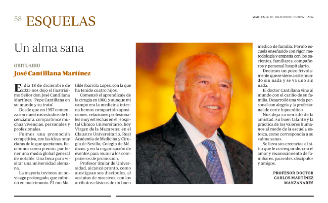 Un alma sana Obituario José Cantillana Martínez El día 18 de diciembre de 2025 nos dejó el ilustrísimo señor [...]