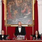 Tal y como establece el protocolo de este solemne acto, el catedrático de Dermatología, Dr. Francisco Miguel Camacho Martínez y el cardiólogo Dr. José María Cruz Fernández, últimos Académicos de Número en ingresar en la RAMSE, han acompañado al nuevo Académico al salón Ramón y Cajal.