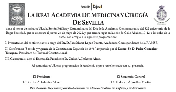 Sesión del Día de la Academia que tendrá lugar el próximo jueves 26 de mayo a las 20h. La conferencia estará a cargo del Excmo. Sr. D. Pedro González-Trevijano, Presidente del Tribunal Constitucional.