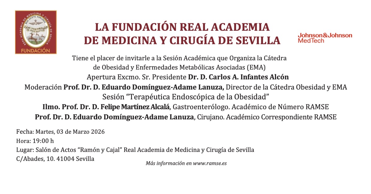 LA FUNDACIÓN REAL ACADEMIA DE MEDICINA Y CIRUGÍA DE SEVILLA Tiene el placer de invitarle a la Sesión Académica que Organiza la Cátedra de Obesidad y Enfermedades Metabólicas Asociadas (EMA)